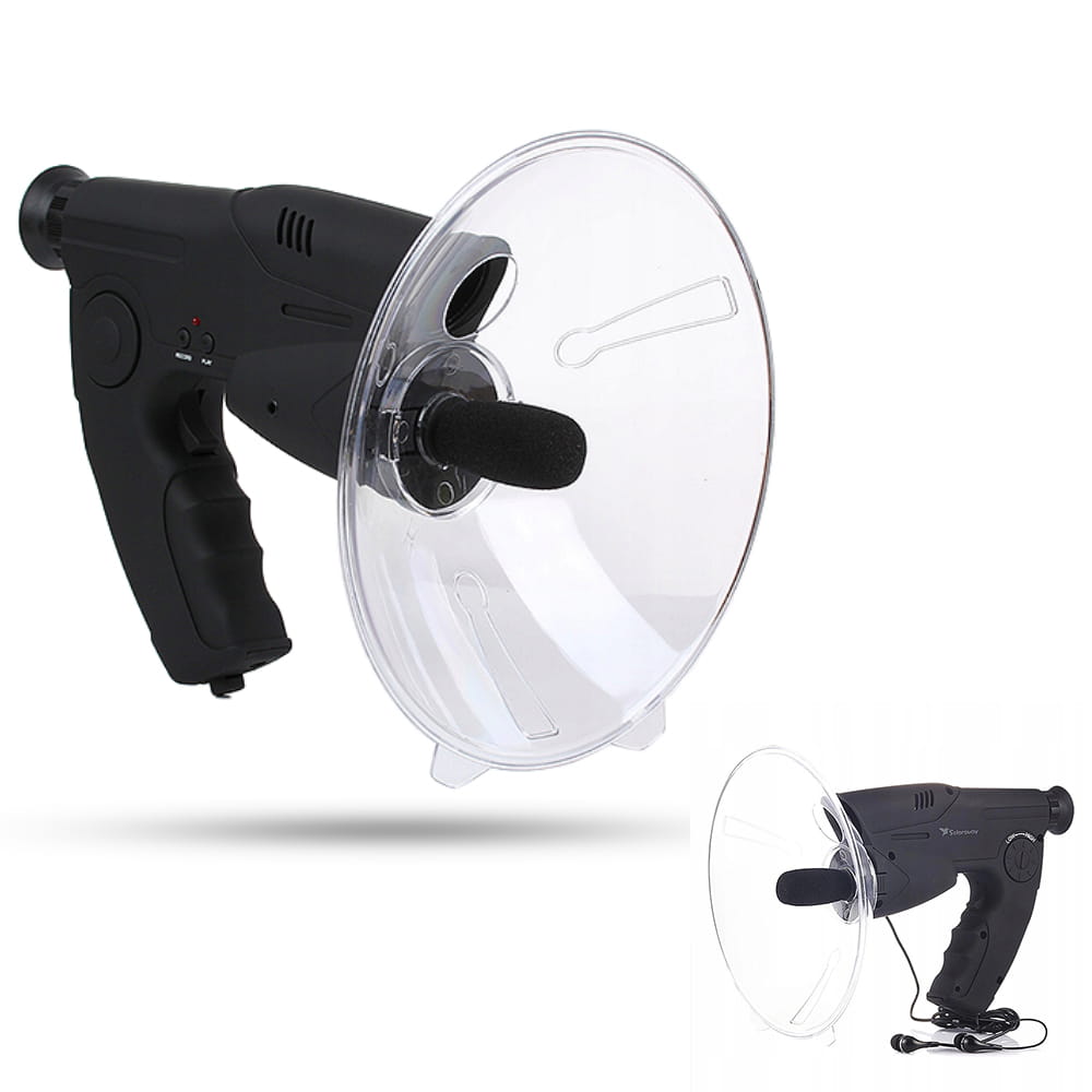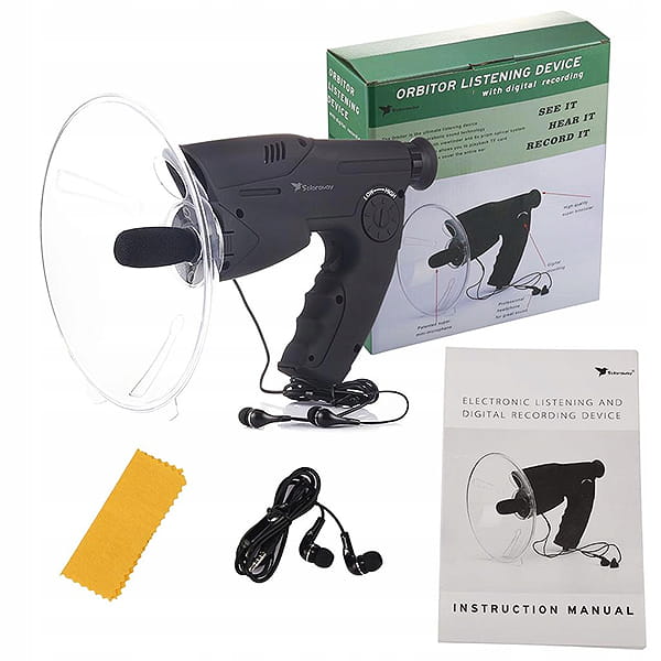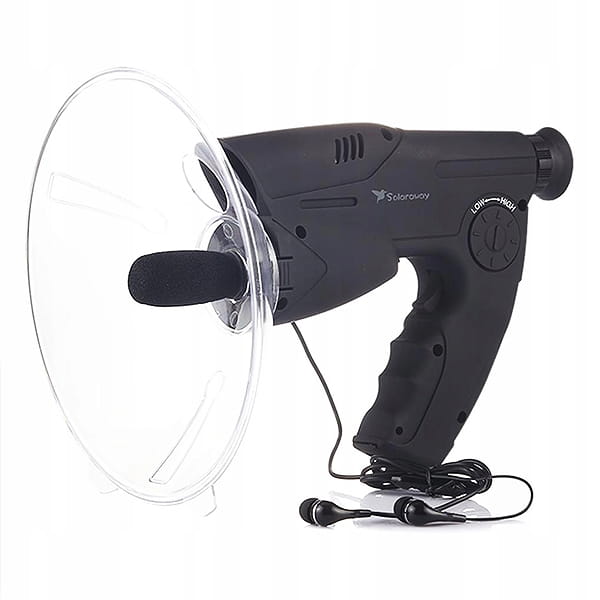 Wielofunkcyjny mikrofon kierunkowy PDS to bardzo ciekawy sprzęt o zastosowaniu nasłuchu z odległości oraz obserwacji. Pozwala on na obserwację zwierząt, ludzi oraz innych elementów przez lunetę z zoomem. Mikrofon kierunkowy pozwoli na wzmocnienie dźwięku nawet do odległości maksymalnie 120 m. Możesz też nagrać krótki dźwięk na kartę SD i odtwórz ją na komputerze. Prosta obsługa sprzętu dla każdego użytkownika. Wygodnie nasłuchuj naturę oraz inne elementy.