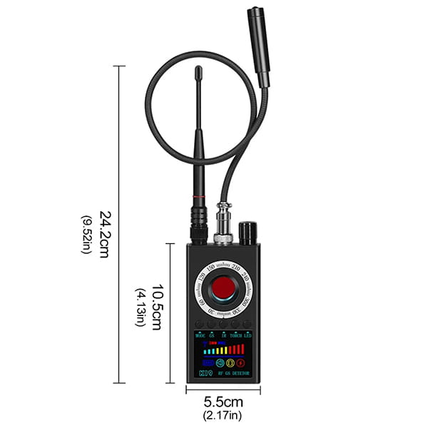 Za pomocą wykrywacza jesteś wstanie sprawdzić pomieszczenie mieszkalne, biuro oraz każdy pojazd tj. Samochód, Bus czy Łódź. Gdy sprzęt wykryje połączenie radiowe zacznie wskazywać diodami oraz dźwiękiem potencjalne zagrożenie. Dodatkowo sprzęt wyposażony został w antenę magnetyczną z diodą LED ułatwiającą namierzenie sprzętów wyposażonych w magnes. Dioda LED na końcówce anteny sygnalizuje zetknięcie z magnesem. W celu zwiększenia wykrywalności oraz ułatwienia wykrywania zalecamy wyłączyć wszystkie urządzenia radiowe tj. telefon, radio czy wifi w trakcie poszukiwań. Wszystko zostało opisane w instrukcji w j. Polskim.