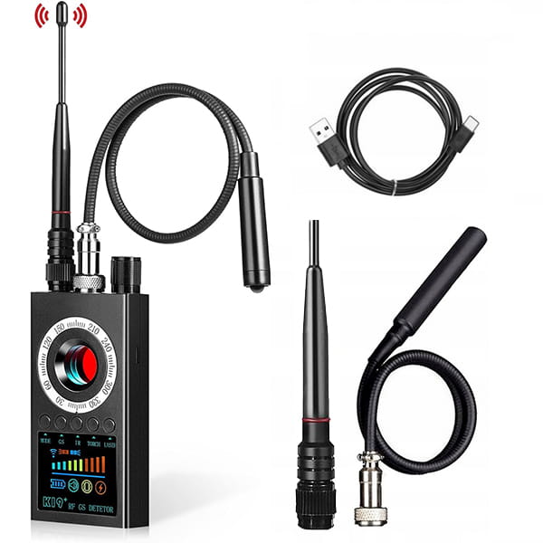 Wykrywacz w wersji + K19 to rewolucyjny model urządzenia podstawowego do wykrywania sprzętów szpiegowskich. Wykrywacz pozwala na wykrycie oraz zlokalizowanie większości dostępnych na rynku aktywnych urządzeń szpiegujących tj. GPS (trackery), podsłuchy GSM, kamery (bezprzewodowe Wi-Fi) oraz obecnie również i kamery wyposażone w tryb nocny IR. Posiada zakres częstotliwości od 1MHz do 6,5GHz. Wygodną opcją sprzętu jest ciekawa funkcja czujnika magnetycznego. Za sprzętem przemawia bardzo łatwa obsługa i uniwersalność zastosowania.